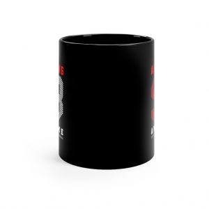 At just under the 12oz capacity of a traditional mug, the 11oz black mug makes a solid case against thirst. Durable, this mug is proof against both microwaves and dishwashers.